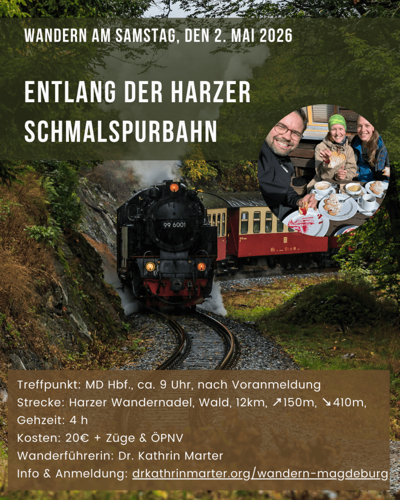 | Samstag 02.05.26 | Wandern | Entlang der Harzer Schmalspurbahn | 12 km, Gehzeit: 3.5-4 h Mehr Infos… |
