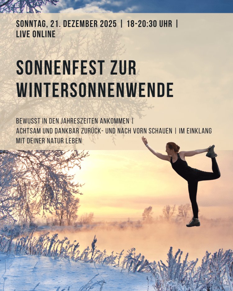 Nimm Dir während dieser Zeit jeden Tag kleine Inseln der Stille. Schreibe auf, wofür Du dankbar bist, und spüre bewusst, was sich lösen darf. Unterstütze Deinen Körper durch Ruhe, naturbelassene Ernährung, Tees und Spaziergänge. So öffnest Du Dich innerlich und körperlich für den Übergang – und nutzt die Dunkelzeit, um neue Energie für das kommende Jahr zu sammeln.