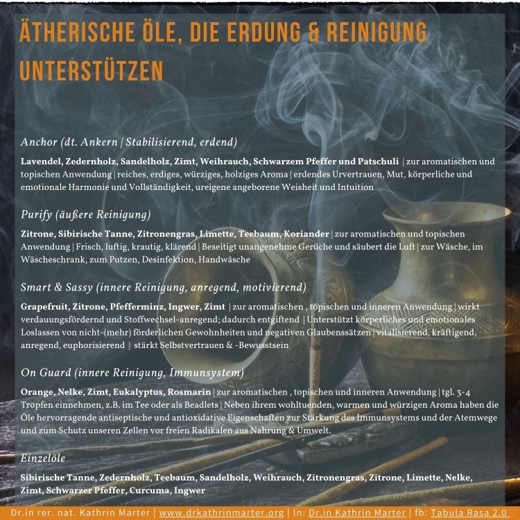 Wenn Du die Intensionen und Erkenntnisse Deiner Reise mit ätherischen Ölen unterstützten und noch effektiver festigen möchtest, findest Du hier Inspirationen für Öle, die die unterschiedlichen Phasen unserer Meditationsreise sehr gut begleiten können.
